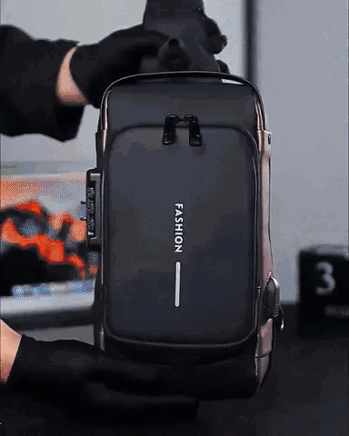 Tiene cierre con clave de seguridad, bolsillo oculto en la parte trasera y diseño de cremalleras reforzadas.