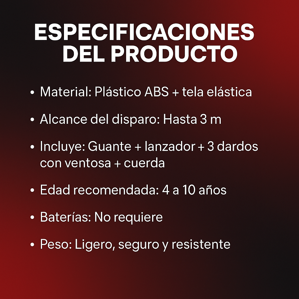 🕸️ Lanza como un héroe: Dispara dardos con ventosa hasta 3 m.