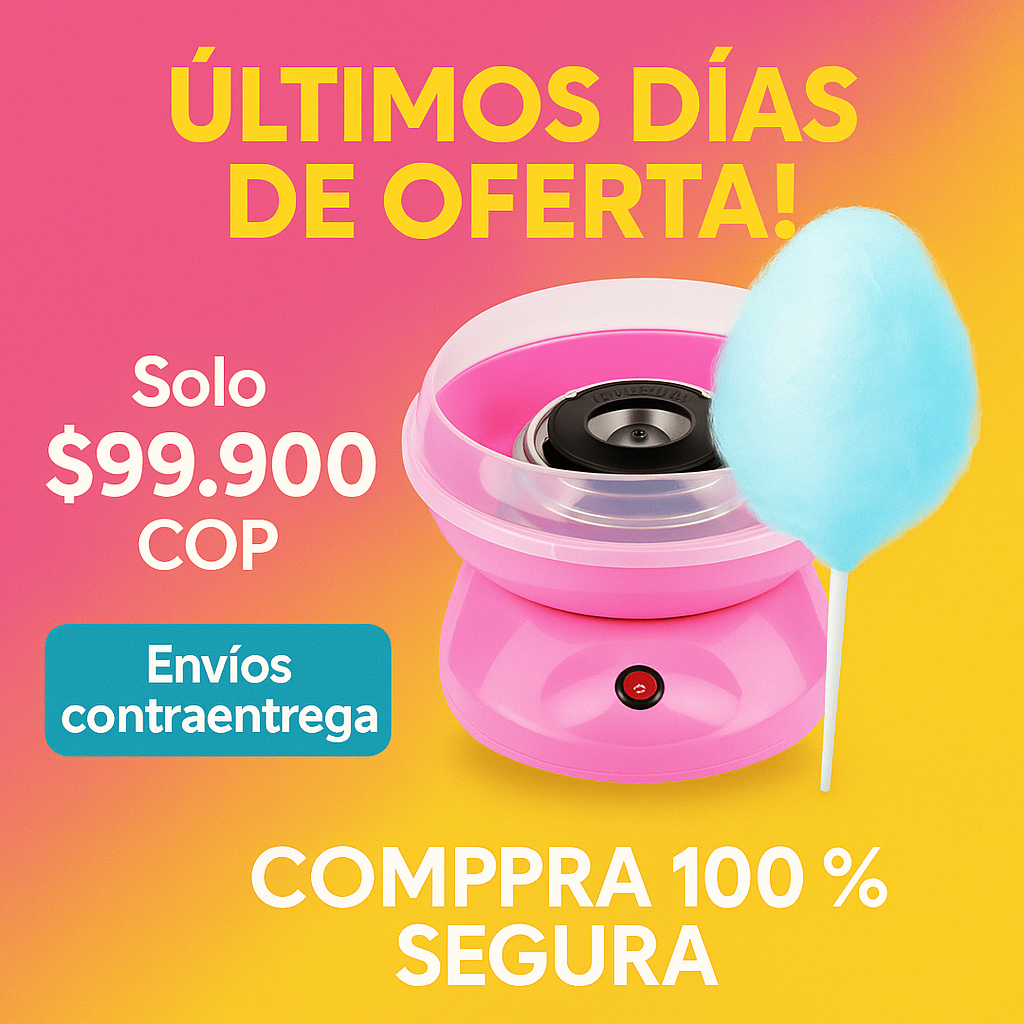 🍭 ¡Disfruta el sabor de la feria sin salir de casa! 🎉✨ Crea algodones de azúcar suaves, esponjosos y coloridos en solo minutos.Perfecta para 🎂 fiestas, 👨‍👩‍👧‍👦 reuniones familiares o 💼 pequeños emprendimientos que quieren un toque dulce y divertido.