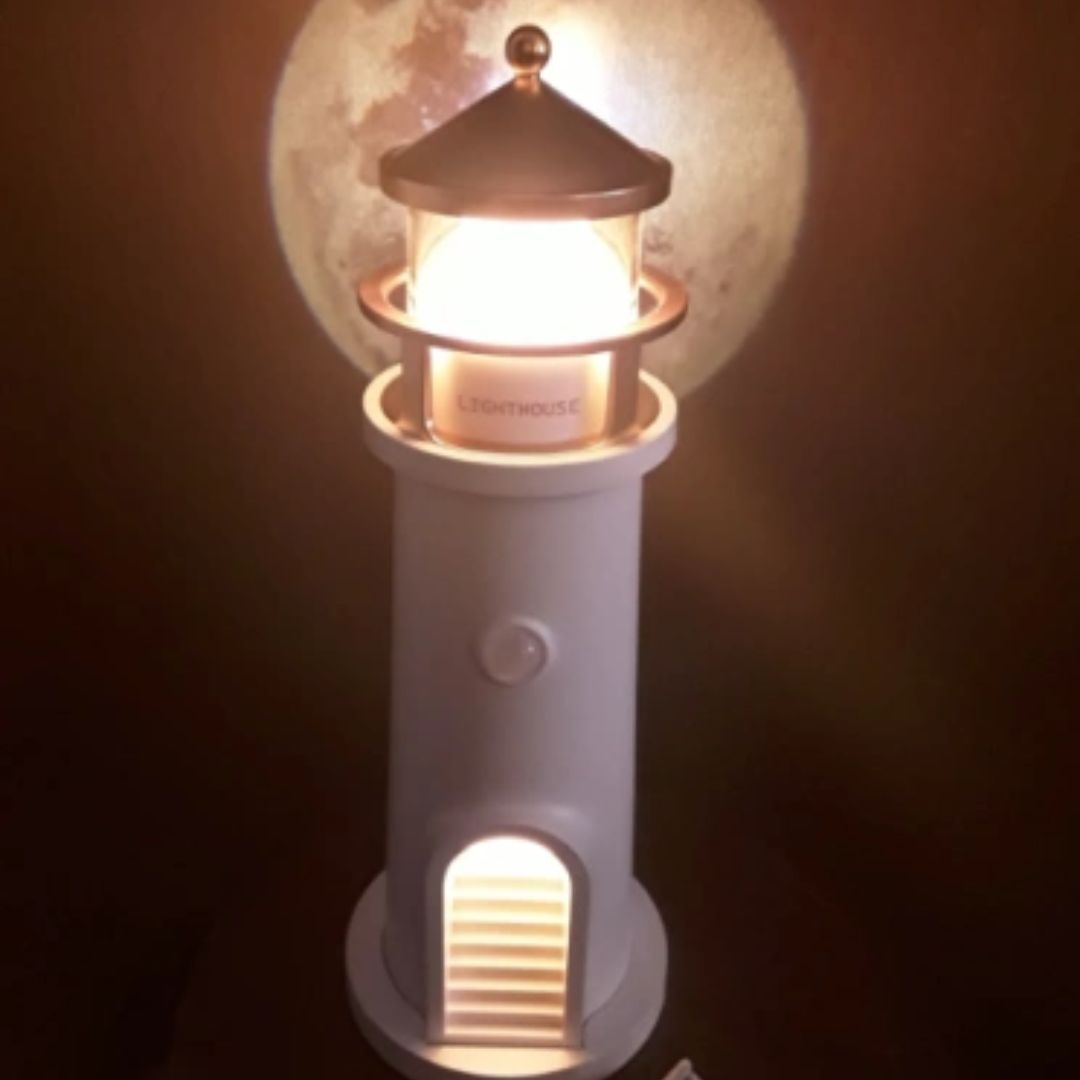 🏠 Su elegante diseño en forma de faro emite una luz cálida y envolvente que aporta calma, estética y bienestar visual.