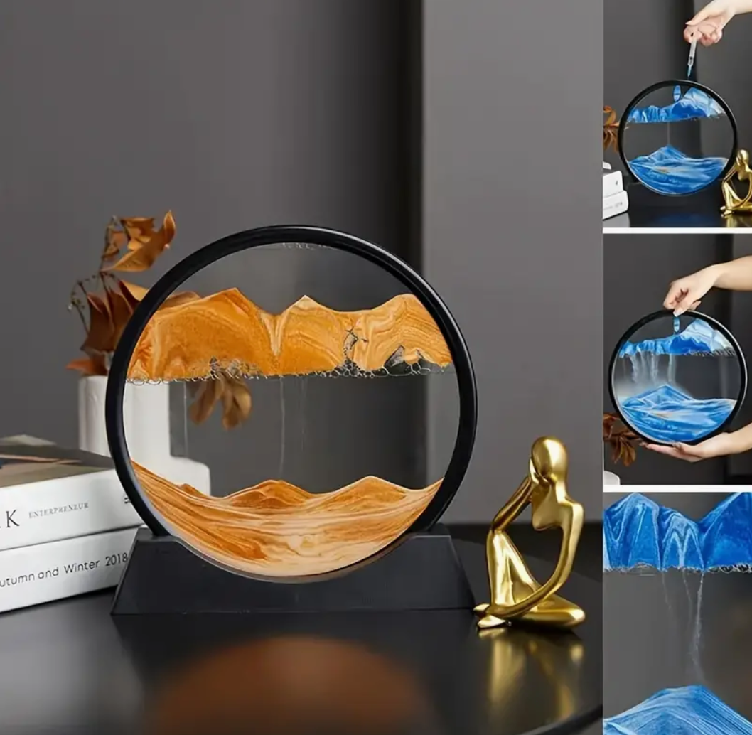 🔶 Arte de Arena 3D en Movimiento: presenta una estructura de arena que se desplaza lentamente, creando paisajes únicos y relajantes cada vez que se gira.