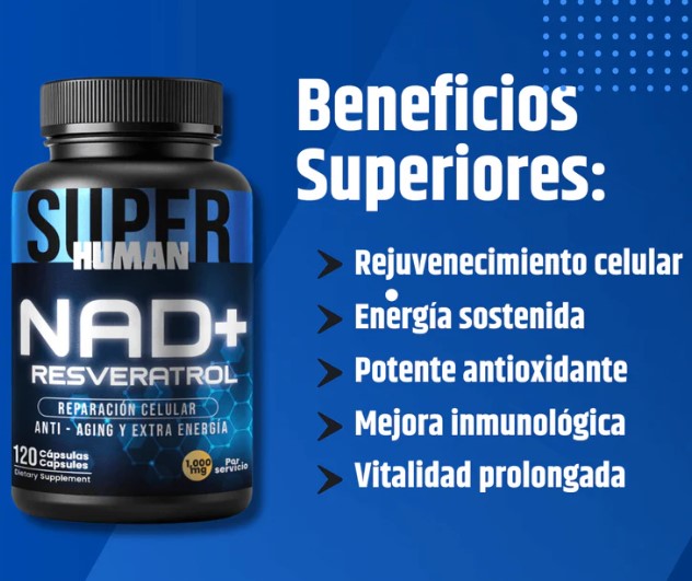 Potencia tu energía celular y promueve la longevidad con cada dosis. Esta fórmula avanzada combina NAD+ y Resveratrol para combatir la fatiga y proteger tus células contra el envejecimiento, ayudándote a sentirte joven y revitalizado.