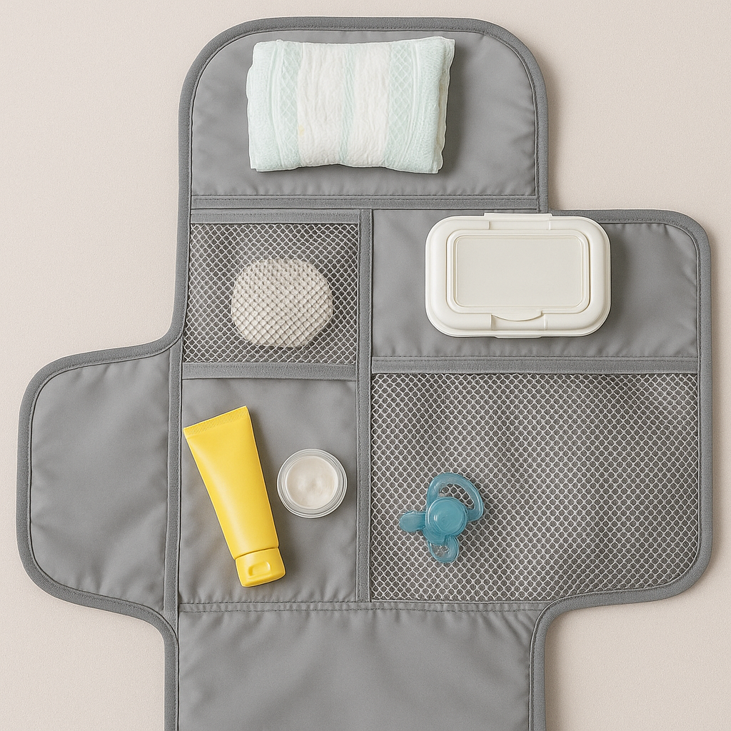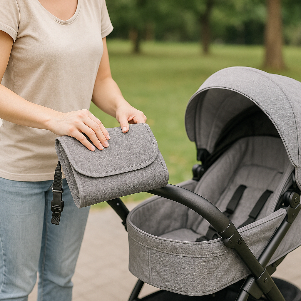 Sí, cuenta con bolsillos de malla elástica y un compartimento con cierre, perfectos para guardar pañales, toallitas, cremas y pequeños accesorios.
