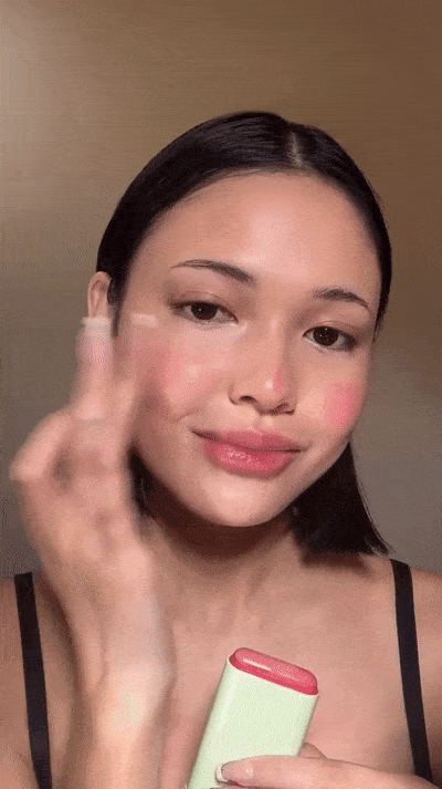 Desliza la barra directamente sobre las mejillas o los labios y difumina suavemente con los dedos, una esponja o una brocha, dependiendo de la intensidad que desees.