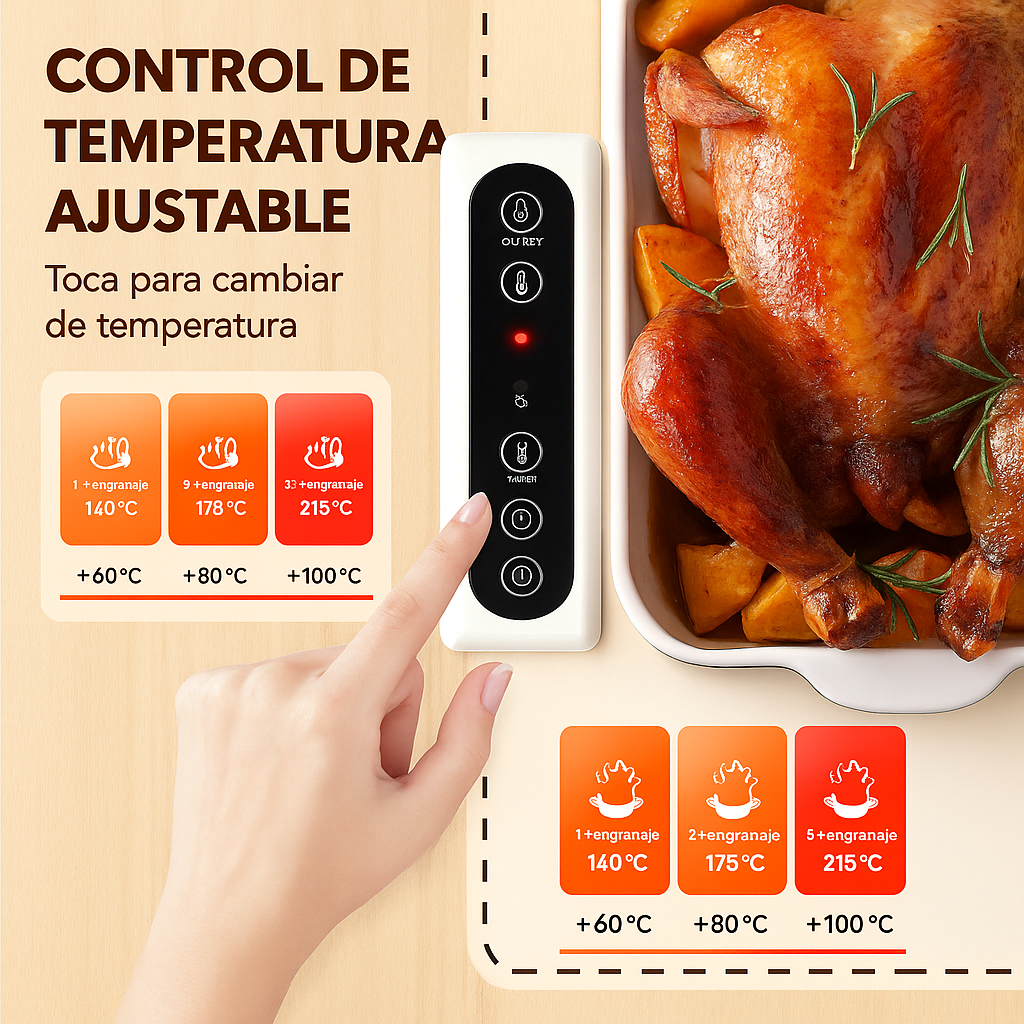 Disfruta tus platos siempre a la temperatura ideal, gracias a su superficie calefactora que mantiene el calor uniforme y prolongado sin perder sabor.